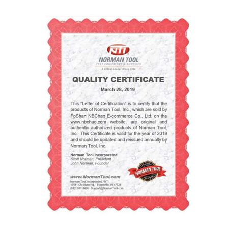 南北潮商城是美国NormanTool RCA纸带的中国总代理,证书可查。