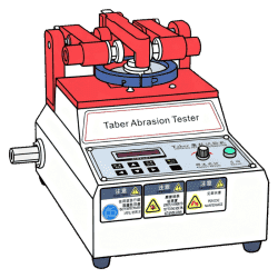 试法为回转之试料顶着一对磨耗轮,并加以规定之负荷,试料旋转时带动磨耗轮,藉以磨耗试料,磨耗损失重量为试验前后试料之重量差。